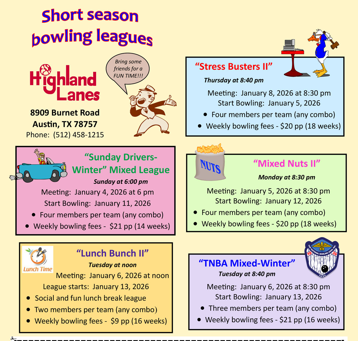 Well, it is a group of teams that compete each week. Team size varies by league, but are usually 3 – 5 members and depending on the league can be all men, all women, or mixed. We have leagues for youth and seniors too. Each league will set up its own rules and prizes – some are for serious bowlers while others are all about having a good time!